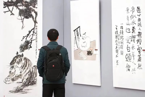 展览作品涵盖了杜建先生书法、花鸟、山水、人物等题材作品,家乡灵山秀水、风土人情跃然纸上。山阳县城城市风貌,苍茫雄浑秦岭山脉天竺山,清丽婉约村边古树记忆,陕西传奇千年丰阳塔等,在他的画作中,山阳的寻常巷陌、一草一木都被赋予了永恒的美感。这让山阳人意识到,自己司空见惯的风景,在艺术的视角下竟如此动人。这种认知会激发人们重新审视、珍惜和传播自己的文化。杜建民先生的艺术成为了外界了解山阳的一扇窗,将家乡的自然与人文之美传播到更广阔的天地。