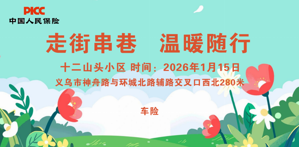 由义乌人保财险主办的走街串巷,温暖随行-十二山头小区站即将来袭,将带领您在轻松愉快的氛围中了解车险知识,感受我们的用心与专业。